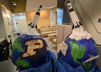 Haylee Queen-Link (Academic Advisor) and Tom Bietsch (Senior Design-Build-Test Engineer) show off their pumpkin with Neil!