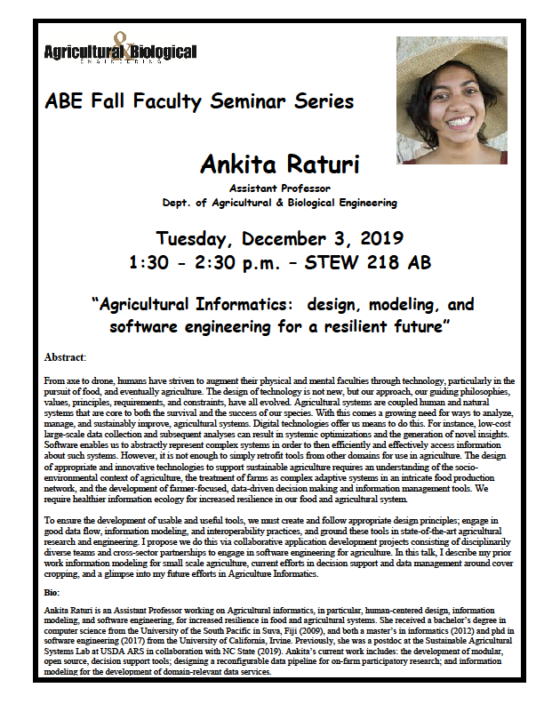 ABE Fall Faculty Seminar Series: Dr. Ankita Raturi