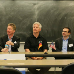On Wednesday, April 13th, the Lyles School of Civil Engineering hosted the German America Chamber of Commerce for a seminar on the innovation of energy efficiency in transportation systems. The event kick-off was a poster session in the Woods Commons to highlight some active research projects and give students an opportunity to engage with German transportation specialists.