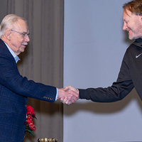Purdue University recognized more than 300 faculty members for their years of service during a celebratory luncheon Dec. 2. Faculty members were celebrated for service anniversaries ranging from 10 years to a remarkable 55. Avinash Kak, professor of electrical and computer engineering, and Gintaras Reklaitis, the Burton and Kathryn Gedge Distinguished Professor of Chemical Engineering, were the longest-serving faculty to be honored; both reached their 55-year service anniversaries in 2025.