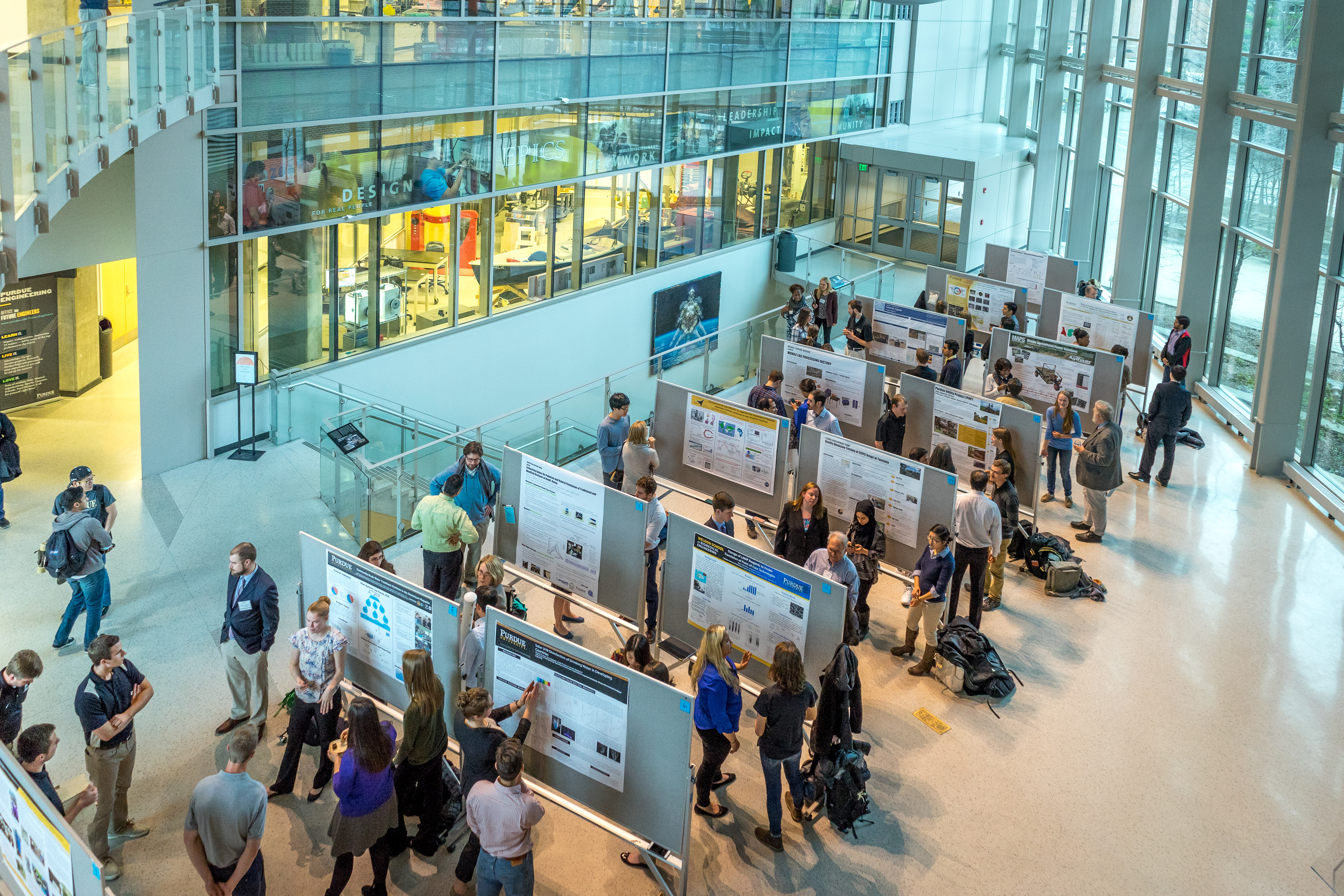 Each year, the Shah Family Global Innovation Lab hosts the Innovation for International Development (I2D) Exposition at Purdue University. This event highlights Purdue's incredible engineering innovations focused on addressing the Sustainable Development Goals. Additionally, the expo offers a chance for students, faculty, and staff to connect with international development professionals and partner organizations. We have previously invited representatives from USAID, Bill and Melinda Gates Foundation, Land O’Lakes, Inc., Catholic Relief Services, Save the Children, Global Good, Mercy Corps, and more.