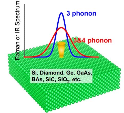 In the new study, they turned their attention to whether four-phonon scattering can universally affect infrared and Raman spectra of materials. The short answer is yes; they found that four-phonon scattering generally makes the spectral lines wider and the peaks lower.