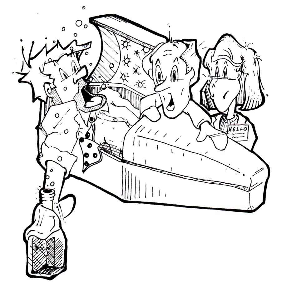 During the World War II years, an ME professor was conducting research with Hillenbrand Industries on the design of caskets and a means of effectively sealing them to be waterproof. One day the professor, who had a bottle stashed in his lab and who was fond of imbibing, got tipsy - and then drowsy. He decided to climb into the casket to take a nap.
