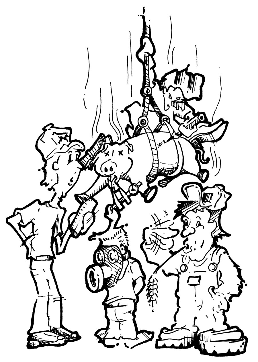 Fred supplied a 200-pound hog. It was killed, embalmed, and delivered to the mechanical engineering building. Our job was to measure the heat transferred to the animal via radiation on a summer day.