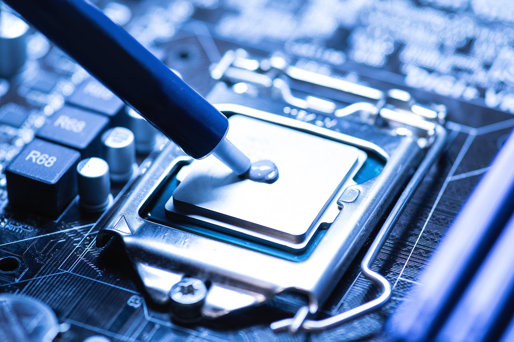 Semiconductors generate a lot of heat, which shortens their life and decreases performance. To remove that heat, a metal heat sink is often attached to conduct heat out to the environment. Between the two, a layer of thermal grease is often applied to bridge the gap and improve heat transfer. This paste-like material incorporates a polymer with embedded metal or ceramic particles to ensure that the heat is transferred efficiently.