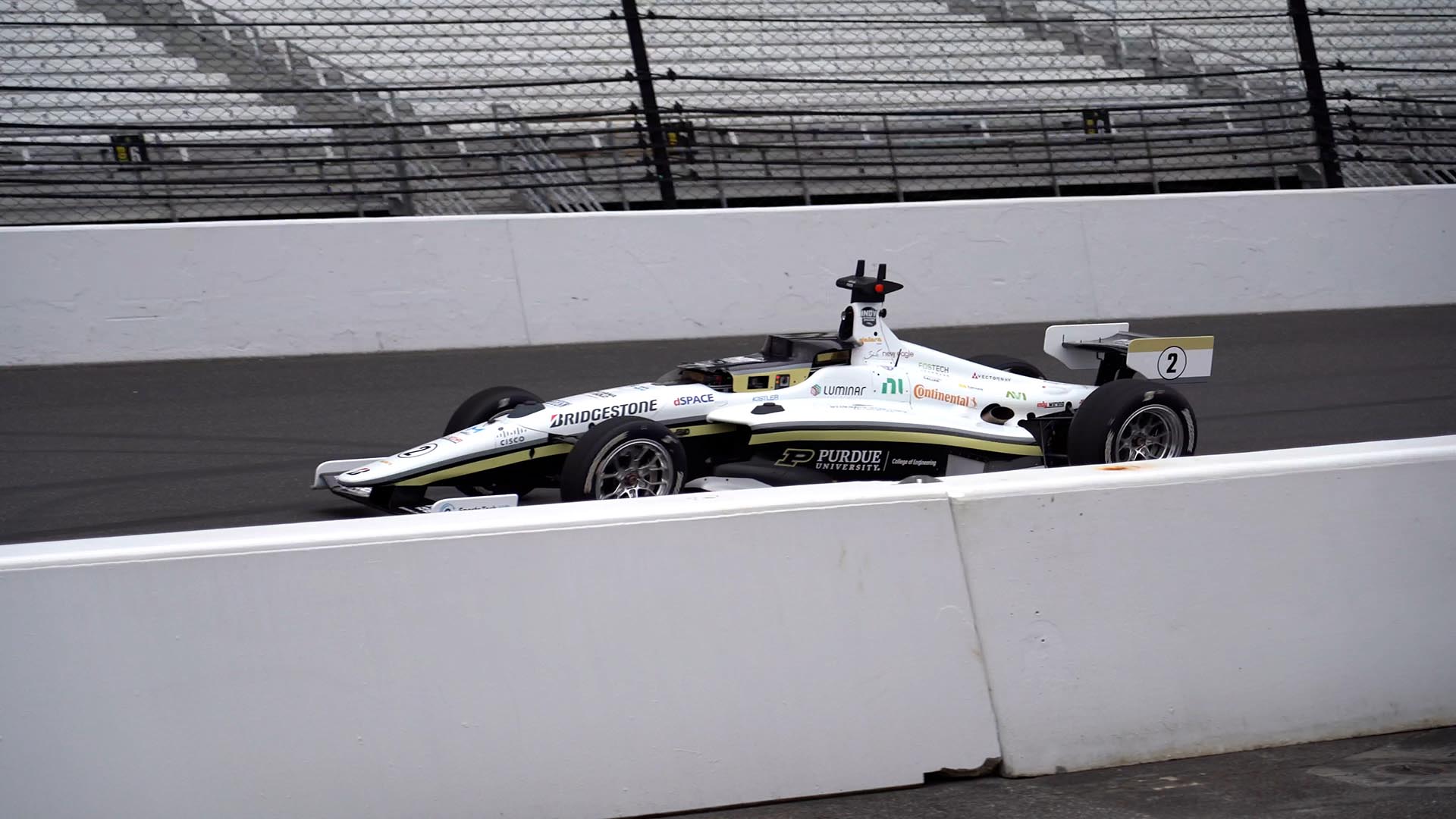 The cars are built by IndyCar manufacturer Dallara, roughly equivalent to their lower-level Indy NXT cars. But the driver’s cockpit has been replaced with a suite of cameras and sensors, as well as a powerful computer to process the data.