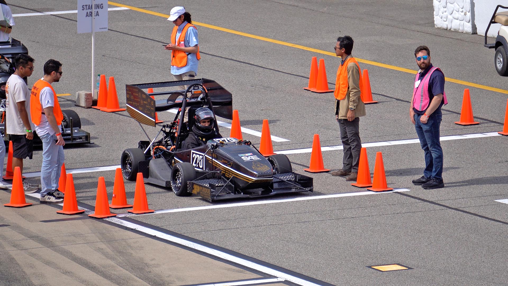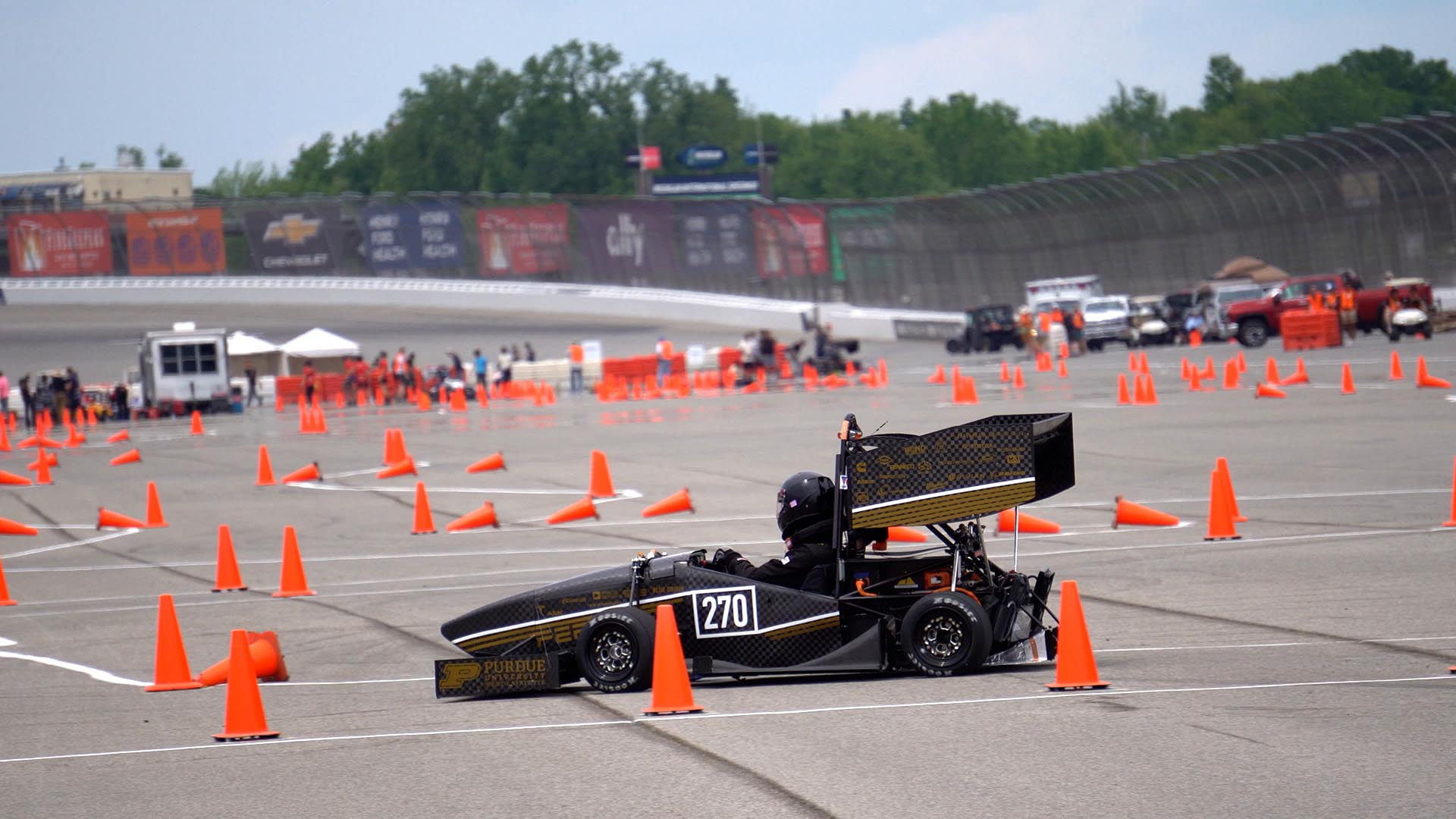 At the green flag, mechanical engineering student Tyler Cormier took the wheel. Behind chain link fences, the other members of Purdue Electric Racing could do nothing but cheer him on and count the laps.