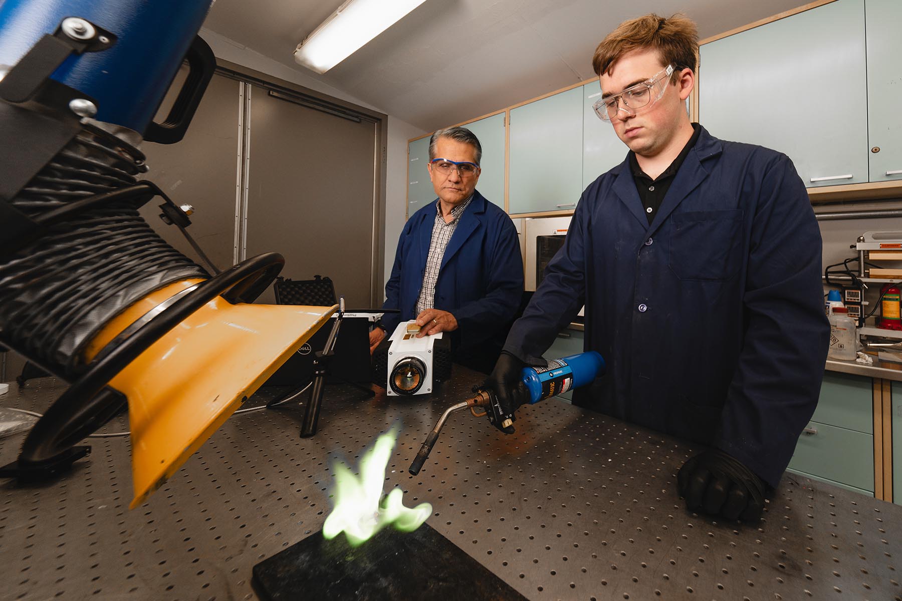 Steve Son, Alfred J. McAllister Professor of Mechanical Engineering, worked with Metin Ornek, research scientist at Zucrow Labs, and a team of other researchers to create the explosive. They started with RDX, a common explosive, encased in a rubberized polymer binder. They then injected thermally-expandable microspheres (TEMs).