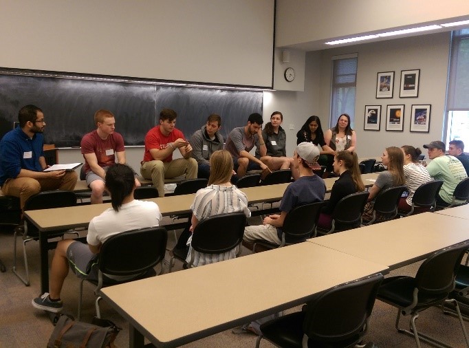First-year engineering students had an opportunity to ask a panel of senior MSE students about their experiences in MSE at Purdue, focusing specifically on extracurricular activities. Topics covered internships, co-ops, study abroad, and independent research opportunities.