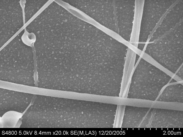 Electrospinning is a well known process, however this approach is novel in many ways. We electrospin polymer precursors that upon heating are transformed into ceramics. This is a new approach to generating ceramic fibers and yields orders of magnitude smaller diameter fibers than conventional, industrial methods. Our facility has the ability to create fibers using high electric fields of up to 100 kV. We are investigating pre-ceramic polymers, which offer the ability to create industrially important high tensile ceramic fibers of SiC and Si3N4, as well as SiO2. Fiber morphology, ceramic yield, and most importantly, decreasing diameter of fibers are the foci of this research.