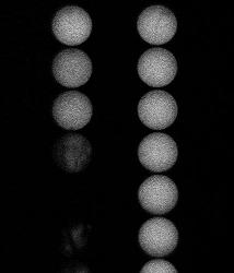 Preliminary CCD image of control (right column) and various bactericial formulations (left column) after one hour. The bacteria are e. coli which have been modified with the lux gene so they emit light as long as they are metabolising.